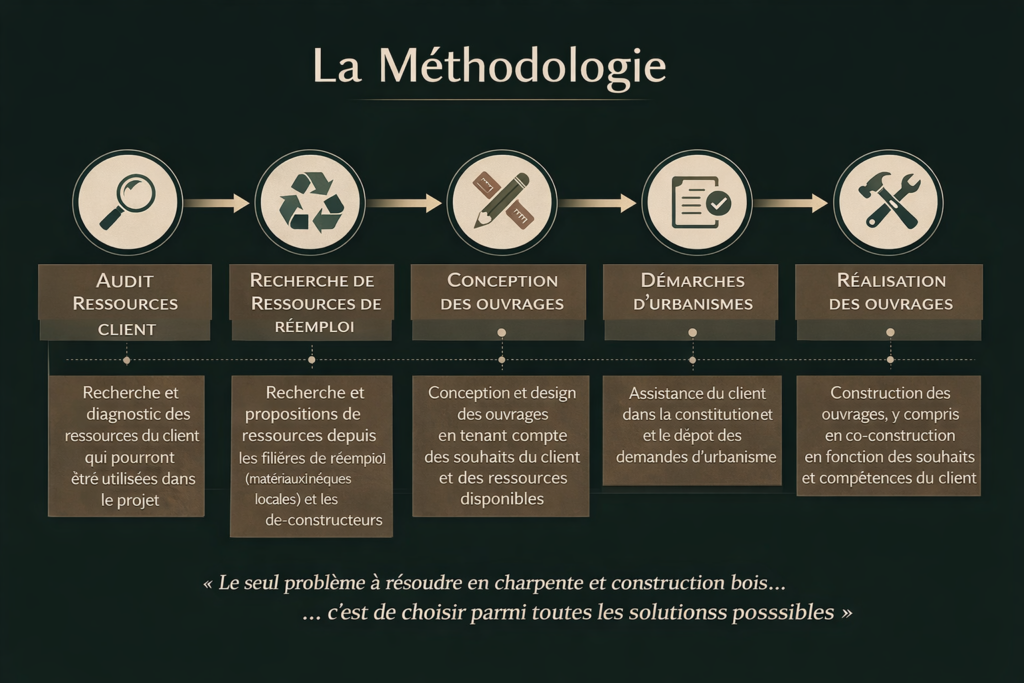 Après 22 ans à participer à une économie de rénovation pas toujours soucieuse de son impact écologique, je veux revenir à une activité de construction où en autonomie.Je pourrai créer des ouvrages avec le moins d’impact environnemental possible en mettant en valeur des matériaux de réemploi.